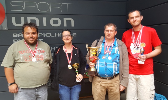 Unsere Dame in der Runde, Fr. Gosztonyi Michaela belegte den 1.Platz und freute sich mit Hr. Hackstock Patrick, der das erste Mal an einer Meisterschaft teilnahm über den 1.Platz. Sie durften sich zusätzlich - zur Medaille - über einen Pokal freuen.